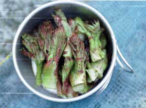 | 林道沿いや伐採跡地に多い。木の芽では、コシアブラの若芽も有名だが、秋田ではほとんど食べない。ハカマを取り除き、生のまま天ぷらに。その他は、軽く茹でてからおひたしや和え物などに。 | |