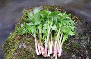 | 雪国・秋田は、ブナ帯に位置している。ブナ帯の山菜は、種類も量も比較にならぬほど豊富で、多彩な調理法が伝承されている。早春、山の木々が一斉に芽を吹き、緑の衣をつけはじめる。あたり一面が若緑になると、山は、コダシを下げた山菜採りでにぎわう。 | ||||